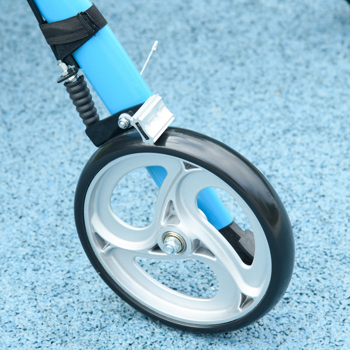 Glide across surfaces with ease, thanks to the large 9.75" front wheels paired with 7.75" rear wheels, all underpinned by a robust shock absorber system. For those moments requiring additional stability, the dual hand brake system is at your service, ensuring safety and peace of mind.