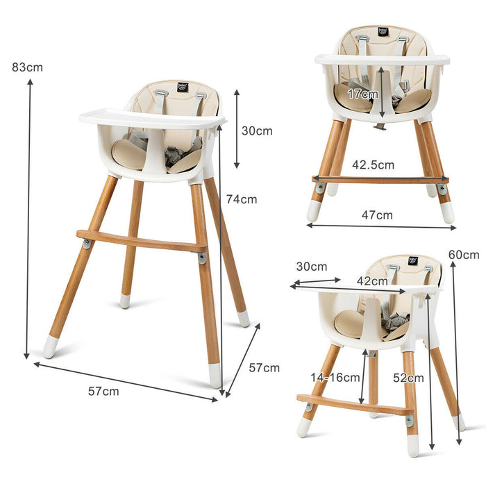 Perfect for ages 6 months to 3 years, our innovative chair transforms seamlessly from a highchair to a toddler chair. Crafted with elegant beechwood legs, the chair sports a sophisticated, cream-coloured design fit for any family dining space.
