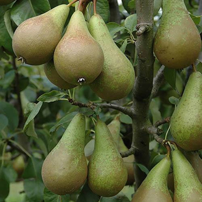 Concorde - This scrumptious pear variety produces large crops of elegant, tapering fruits with white flesh that are ready to pick from September each year. Each one is packed with an incredibly sweet, irresistible juice you wont be able to stop yourself eating them straight from the tree! Try to save some for later though as they'll make wonderful desserts for your Christmas parties! Concorde is perfect for gardeners to grow because it is very heavy cropping and will keep for over two months when picked unripe. Crops: September-October.