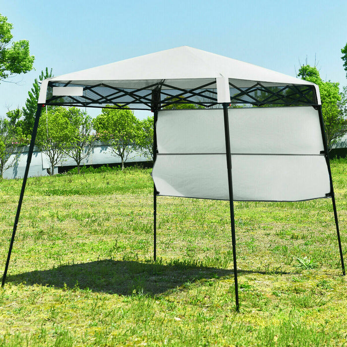 With a swift pop-up design, setting up your own personal oasis has never been easier. Simply spread the frame, attach the elegantly crafted canopy, and extend the legs to add a tasteful retreat to your backyard. The slanted legs not only contribute to the gazebo's aesthetic appeal but also enhance stability, reinforced by the included tent pegs.