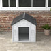 Infusing function with style, the dog kennel stands out with its chic grey and white color scheme, and is crafted from high-quality PP material. The overall dimensions are seamlessly designed to cater to your indoor and outdoor needs.