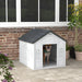 The sleek structure of this dog home is accentuated with delightful window details, offering a touch of sophistication. Its eye-catching aesthetics blend effortlessly into your garden, creating a warm and appealing outdoor area for your beloved pets.