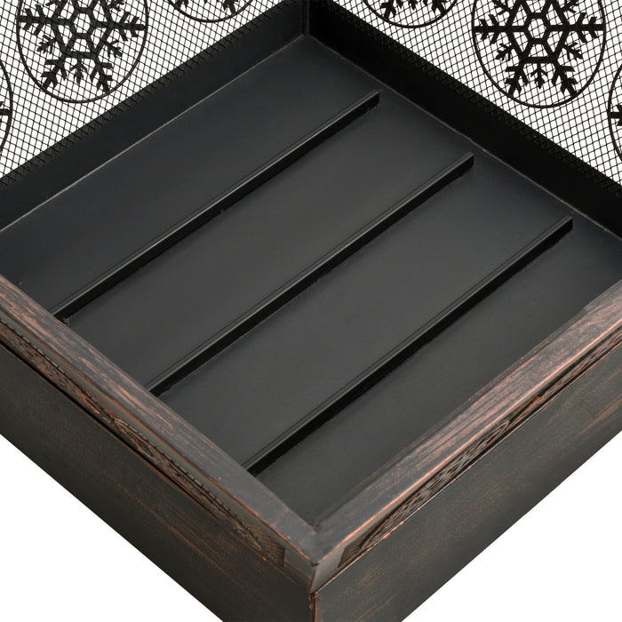 Adorned with intricate snowflake patterns, this fire pit brings an exquisite touch to your outdoor decor. The attention-grabbing design ensures that this fire feature stands out as a decorative element, offering both beauty and functionality.