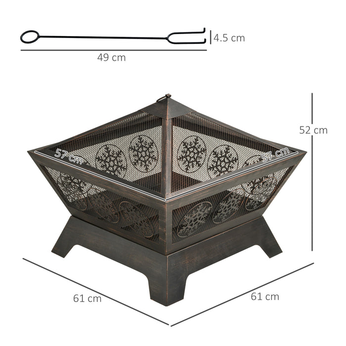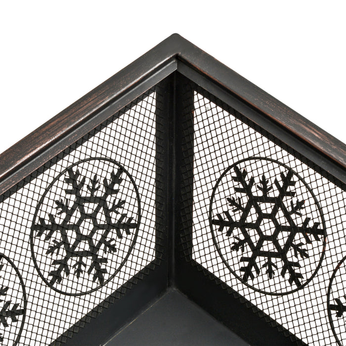 Our fire pit is not just a source of warmth but also an elegant addition to your outdoor lifestyle. The solid metal construction ensures longevity, and the heat-resistant basin can handle up to 500 degrees. The beautiful snowflake pattern and the essential safety features like the mesh lid and poker make this fire pit a practical and attractive choice for your garden leisure times.