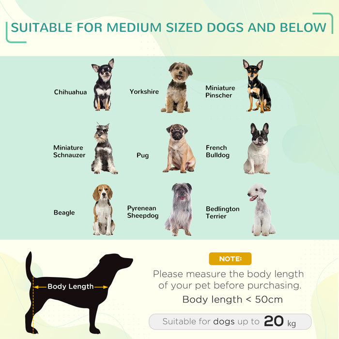 With dimensions of 76L x 61W x 18H cm, the Deluxe Pet Oasis is perfectly sized for medium dogs. It can comfortably support pets measuring up to 50 cm in length and weighing below 20 kg, making it an essential accessory for a wide range of dog breeds.