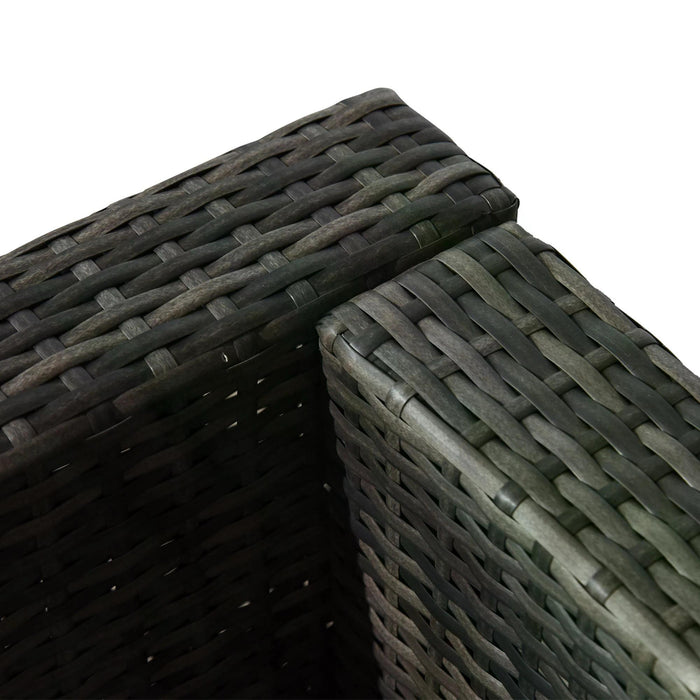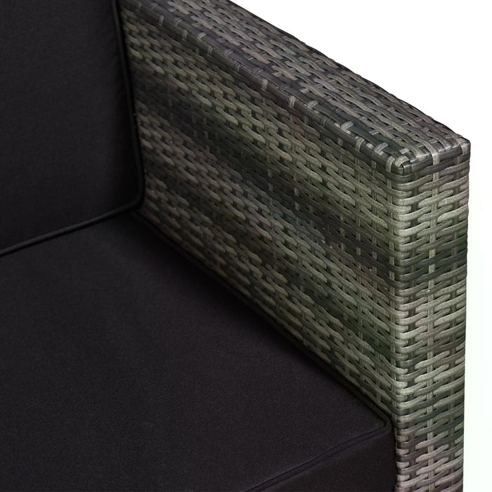 Dressed in a neutral grey or classic black palette, this versatile set seamlessly integrates with your outdoor setting. Utilizing steel, PE rattan, and polyester materials, our garden lounge set promises durability and a chic aesthetic.
