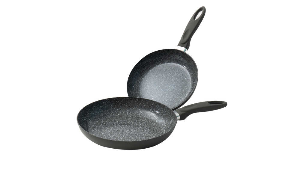 This 20cm and 24cm set incorporates a unique, high-quality Durastone PFOA free ceramic stone coating, so you can cook without the need for fats and oils, giving you tastier, healthier food. The long-lasting polished ceramic stone coating on these high-quality pans is impermeable to everything, providing amazing non-stick performance.