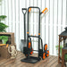 Designed for moving multiple boxes and heavier loads, this folding trolley saves you time and effort. Made from steel for strength and support, it has a tall design that holds items up to 100 cm high, with two extended back plates and a textured skid chassis to prevent falls. The two easy-grip handles provide comfort and the unique three-cluster wheel design on each side makes it easy to move up and down stairs and across uneven surfaces. Suit for both home and work environments.