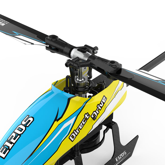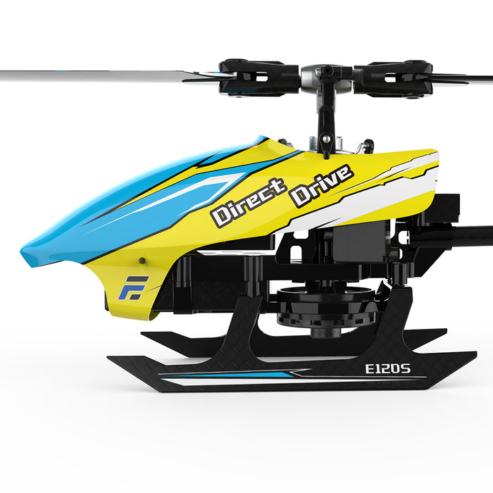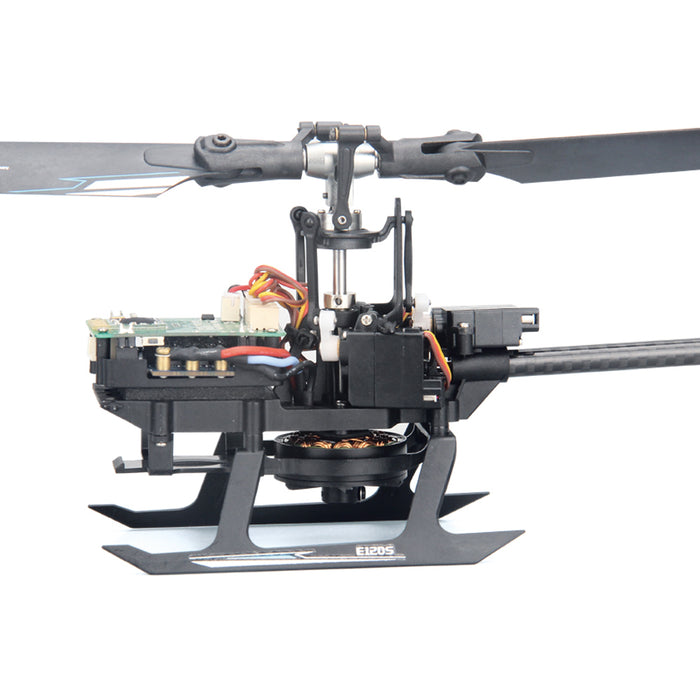 Featuring 2g metal digital steering gear, the E120S offers high torque, high precision, and accurate center return for precise flight control. The 6-axis gyroscope ensures a stable, fast, and accurate flight attitude, making it especially suitable for beginners. With the 2.4GHz communication protocol, the helicopter is compatible with DSMX, DSM2, PPM, and S-BUS standard receivers.
