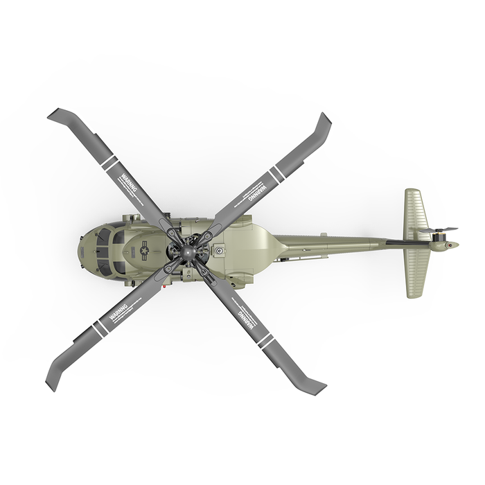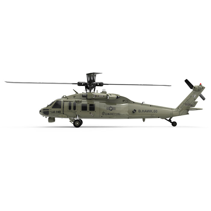 Expertly crafted based on the 47:1 scale reduction of the US UH60-Blackhawks helicopter, the E200 boasts high simulation appearance details, cool lights, and left and right movable side doors. Its shock-absorbing landing gear ensures smooth landings, even for novice pilots.