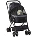 Stay in control with a set of four durable wheels outfitted with safety brakes on the rear and full 360° rotation on the front, ensuring smooth transitions over diverse terrains. The push handle's innovative reversible design caters to your various needs, bridging convenience and connectivity with your pet.