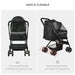 The pet stroller sports a sleek black oxford cloth shell over the basket, coupling elegance with practicality. While your pets enjoy their journey under the protective flap, you can stow their treats and toys within easy reach, ready to make every outing enjoyable and hassle-free.