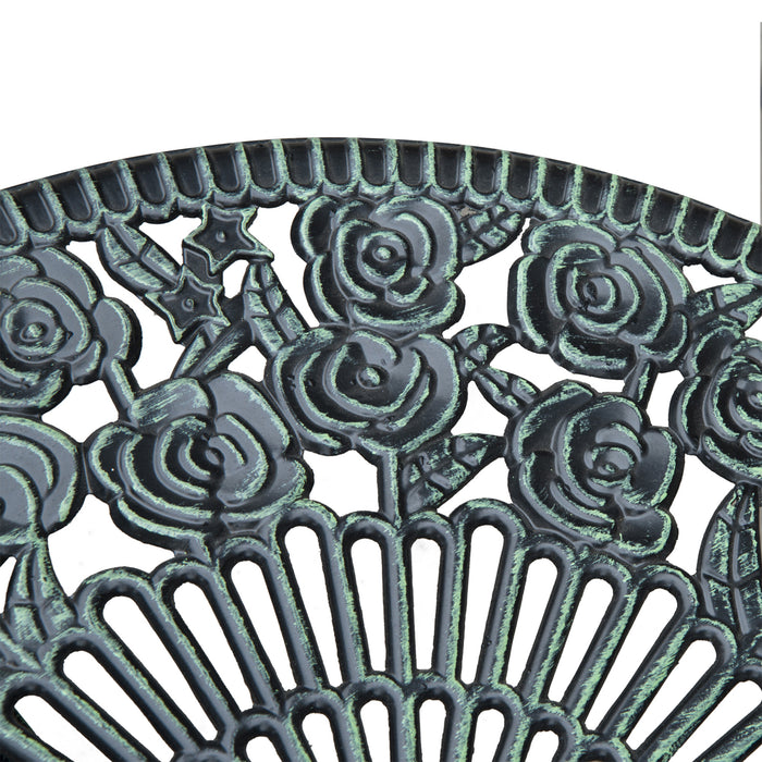 The verdigris finish grants this bistro set a distinct antique appearance that melds with its floral motif for a look that adds character and sophistication to your patio décor. The easy assembly means you can start- enjoying this lovely set up without any hassle.