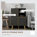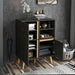 Equipped with three generously sized cupboards and an open compartment, this cabinet offers abundant space for your essentials. The middle glass shelf in the open area adds a touch of elegance while enhancing visibility and access to your displayed items.