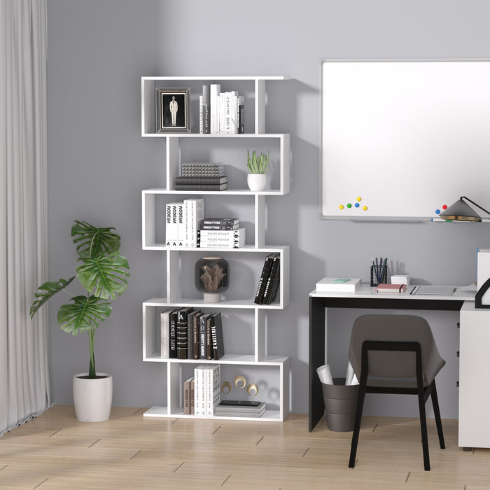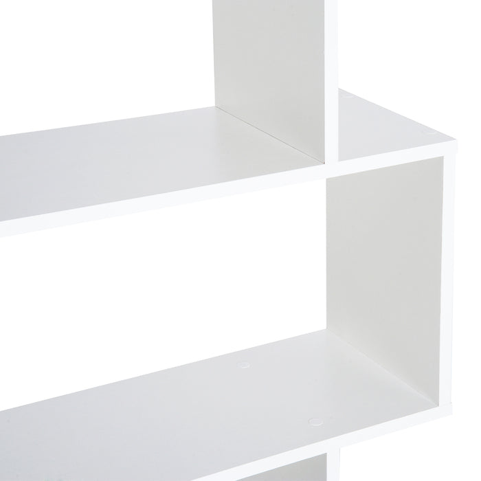 The clever, contemporary design of this shelving unit boasts a distinctive S-shaped silhouette that serves as an artistic statement while offering practical storage solutions. Its open and closed elements present a dynamic visual appeal that enhances home or office decors with a fresh, minimalist aesthetic. This versatile piece functions splendidly as a bookcase, a showcase for your treasured mementos, or a sophisticated room organizer.