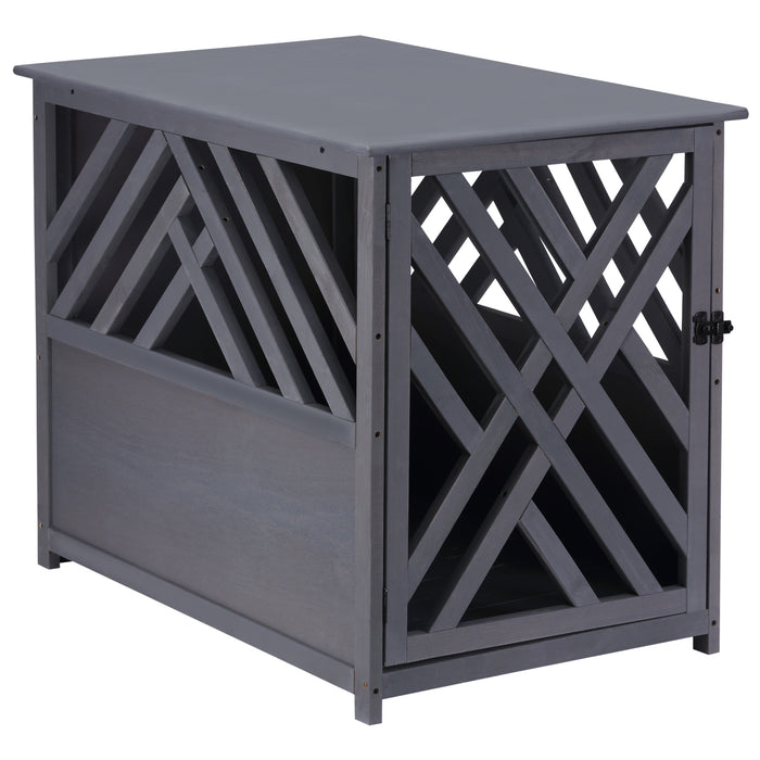 Finished in a versatile, all-grey palette, this piece's aesthetic adapts to any interior décor, bringing a touch of understated elegance to your living space. The diagonal wooden slats not only contribute to its chic appearance but also offer excellent ventilation, ensuring your pet's comfort.