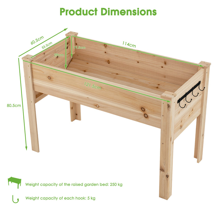 The craftmanship of this garden bed is apparent through its resilient structure, crafted from carefully selected fir wood known for its resistance to harsh weather conditions and wear over time. The 0.5-inch thickened boards add to the bed's solidity, ensuring it remains shape-true throughout its usage. Designed to withstand a substantial load, this raised bed can support a hefty weight of up to 550 pounds.