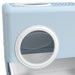 Rendered in a calming blue tone with durable PP material, the overall dimensions ensure a spacious interior. The front door provides an ample entrance while the thoughtfully-sized top door ensures a practical exit. The removable tray and scoop dimensions guarantee a perfect fit for a comprehensive cleanup.