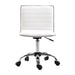 Boasting an elegant design with sleek, flowing lines, this chair is upholstered in premium PU leather that offers a touch of sophistication to any office environment. A thick, high-density sponge cushioning ensures you enjoy supreme comfort, while the robust steel frame and a sturdy base equipped with casters contribute to the chair's secure and stable design.