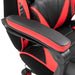 Upholstered in premium faux leather exhibiting a bold red and black palette, the chair exudes an aura of excitement and energy that is sure to elevate any space.
