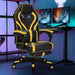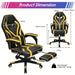 Supported by a heavy duty base with a high quality gas rod, this gaming recliner armchair is sturdy and stable enough to support up to 120kg. Ergonomic design perfectly conforms to the curve of the body to achieve optimal comfort. You will sit comfortably and feel relaxed with high backrest, lumbar pillow, retractable footrest and thick padded cushion. The smooth PVC surface is easy to clean while bringing you a skin-friendly touch. Besides, the seat height and backrest can be easily adjusted to meet your ideal position. This racing gaming chair can not only improve your gaming experiences, but also serve as a comfortable computer desk chair for your daily work or study. Adjustable Reclining Chair: The seat height of the gaming chair can be adjusted from 45-55 cm to fit well with people of different heights. Moreover, adjustable backrest (90-135 degrees) and linkage armrests enable you to find ideal positions for working, gaming or napping. And you can easily push up the control handle to achieve the adjustment. Comfortable Seating with Retractable Footrest: Equipped with a high backrest, thick padded seat cushion and massage lumbar pillow, this ergonomic gaming chair can give you strong support for your whole body, including your neck, shoulders, back, waist and pelvis. Additionally, the retractable footrest is designed for you to take a nap when you're tired. Premium and Durable Materials: This racing style chair is upholstered with thick cushions which are filled with high density sponge and covered with smooth PVC leather for upgraded comfort. What's more, this gaming recliner chair comes with a premium class-3 gas rod, which ensures high safety and stability for long lasting use. Stylish and Multifunctional Gaming Chair: With a stylish design and cool appearance, this swivel computer desk chair is a good addition to your home and can add a sense of fashion to your living space. In addition to gaming use, this chair can also be used for office, media room or living room to meet all your needs for studying, working or daily leisure. 360° Swivel Chair with Sturdy Base: Equipped with 5 flexible universal rolling casters, this reclining gamer chair provides smooth and silent movement in all directions. In addition, the heavy duty 5-point base offer a maximum weight capacity of 120kg while keeping the E-sports video game chair stable during moving.