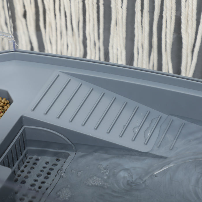 Introducing our innovative PawHut Turtle Tank, a sublime aquatic environment designed specifically for the comfort and enjoyment of your small reptilian friends. Not only does this tank offer a comprehensive triple filtration system for the utmost cleanliness, but it also includes a variety of features to mimic the natural habitat of turtles. Your pet is bound to flourish in this multifaceted space designed for splashing, basking, and exploring.
