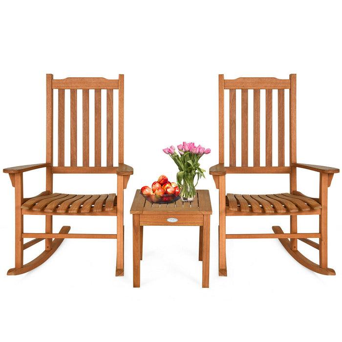 The set's classic wooden rockers honor the timeless aesthetic, ideal for complementing your garden's naturality or accentuating your patio's charm. Its simplicity in design marries well with a myriad of décor themes, from the traditional to the contemporary, enhancing your outdoor or indoor space with an understated elegance.