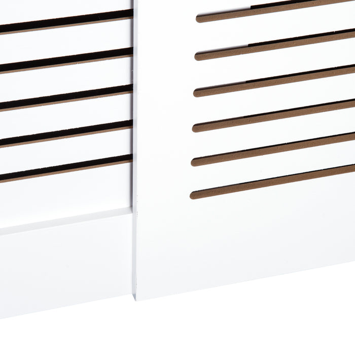 Constructed with premium MDF boards, this cover promises longevity and sturdiness. Its polished white finish provides a resilient and easy-to-clean surface that adds a touch of refinement to any room. Designed for durability, this cover will protect and hide your radiator for years to come.