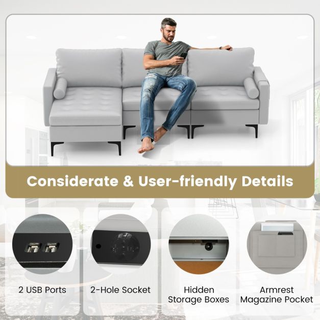 With a design that considers your convenience, this sectional sofa arrives in three compact boxes, complete with straightforward instructions for a stress-free assembly process. It boasts a sleek light grey hue that effortlessly complements a variety of interiors, adding a modern twist to your home. The generous dimensions of the L-shape configuration measure 247 x 130 x 80 cm (L x W x H), providing an abundant area for lounging and entertainment.
