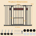 Our extra-wide pet gate with 2 extensions included can seamlessly extend from 74 cm to 104 cm to accommodate various door frames, staircases, and hallways, with the height of 78cm, which is an ideal barrier for medium-sized dogs, small-sized dogs, puppies, and cats. The walk-through door featured dual locks, paired with 4.8 cm dense pipe spacing, ensuring excellent security. Furthermore, the top locking mechanism is easy to unlock via one hand, by simply pressing and lifting up. Thanks to its auto-close and auto-lock hinges, the gate smartly closes when less than 90° and remains open at a 90° angle. Additionally, a convenient mini door at the bottom lets smaller pets pass through with ease while still keeping them secure within boundaries. For installation, choose between a no-drill, pressure-mounted setup for temporary arrangements or a more permanent, secure hardware-mounted installation. Our versatile pet gate is an essential product for pet owners seeking to create a safe and adaptable environment for their pets. Adjustable Width: The extra wide pet gate includes 2 different length extensions, allowing for a perfect fit in various open spaces ranging from 74 cm to 104 cm, ideal for doorways, staircases, and kitchen entries. Perfectly sized at 78cm in height, it is designed for medium and small pets. Dual-Lock Design & Lockable Small Door: The walk-through door features dual locks for enhanced stability and safety, paired with an upgraded locking mechanism at the top that allows for one-hand operation. Additionally, it features a lockable small door, allowing small pets to easily pass through. Auto-Close & Auto-Lock Hinges: The dog gate is equipped with a safe door that offers 180° door swings in 2 directions. Moreover, it could close automatically when the angle is less than 90° and remain open when set exactly at 90°, providing added convenience and safety. Robust and Secure Construction: Built with a reliable metal frame, the pet fence provides a robust barrier, ensuring long-lasting strength. The 4.8 cm dense pipe spacing effectively prevents pets from escaping or getting stuck, ensuring a safe environment for your furry friends. 2 Installation Methods: The dog gate is equipped with 4 adjustable pressure mounted kits for a no-drill installation, perfect for temporary or semi-permanent setups. Alternatively, for more permanent and stable solutions, hardware mounted kits are also provided. Warm Tips: Please do not cut off the zip ties until the installation is finished.
