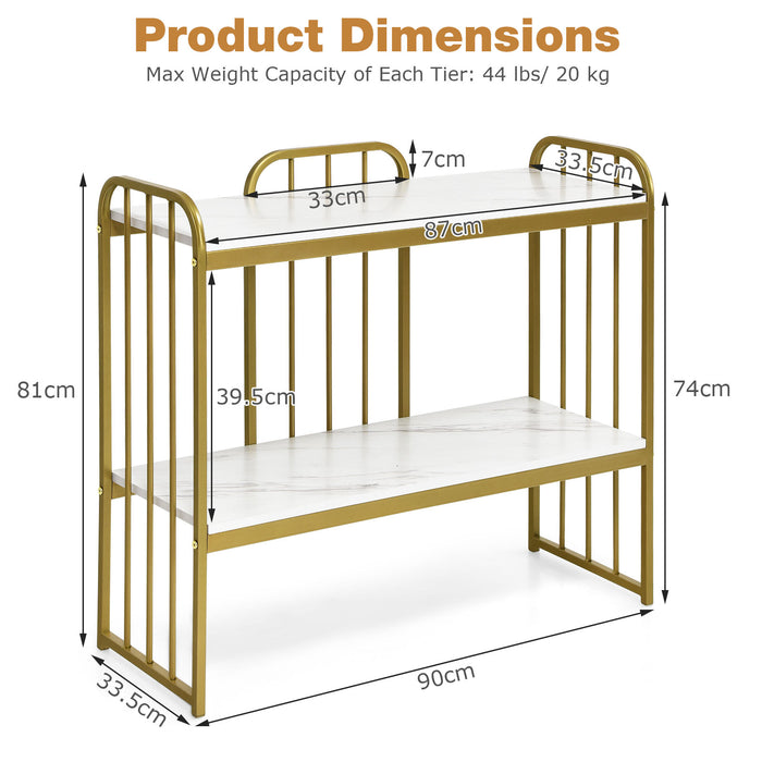 The slender steel frame does not compromise strength for style. This table is engineered to bear significant weight, holding up to 20kg on each shelf with ease. Its golden finish not only adds a touch of sophistication but also signifies the sturdy support it provides for your treasured items.