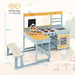 Constructed from sturdy fir wood, this outdoor kitchen is built to withstand the rigors of playtime. The integrated kids picnic table and bench with a dessert table and 7 desserts offer an enjoyable meal experience. Moreover, the stoves, rotary knobs, sink, oven, and blackboard add even more layers of imaginative play, while the abundance of accessories provide a seamless cooking experience. This mud kitchen is a wonderful gift for children, fostering pretend play and inspiring creativity. Not only does it provide hours of entertainment, but it also boasts educational benefits, making it a valuable addition to your garden, backyard, or other outdoor spaces. 2-in-1 Versatile Design: This outdoor kitchen playset includes a built-in kids picnic table and bench, complete with a dessert table and 7 desserts for enjoying meals. Meanwhile, the stoves invite kids to make mud pies using the equipped pots and utensils, doubling the enjoyment of playtime. Solid Wood Construction: Crafted from solid fir wood, this mud kitchen is built to withstand playtimes with robust stability and long-lasting durability. The splinter-free surface and child-safe rounded edges ensure a safe environment for children to explore and play without risks. Various Fun Play Options: The fir wood play kitchen features rotary knobs that make realistic sounds, adding to the immersive play experience. Moreover, the versatile sink allows for both water and mud play, while the oven and blackboard provide additional play opportunities for little ones. Brilliant Present for Kids: Boating a realistic design, this wooden mud kitchen encourages children to engage in imaginative and creative play. It serves as an ideal educational toy that combines fun with developmental benefits, providing hours of enjoyment for kids. Ideal Addition to Outside: Perfect for gardens, backyards, and other outdoor areas, this wooden play kitchen offers unlimited fun for children’s playtime. Its modern appearance completes outdoor spaces and other furniture beautifully.