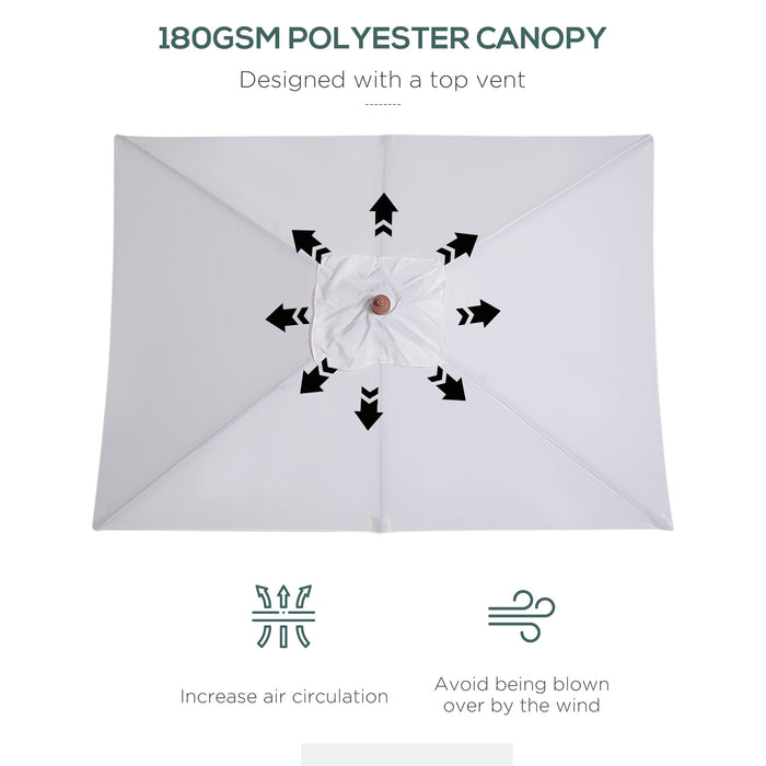 Our parasol's canopy is a visual delight, made with high-quality 180g polyester fabric that provides ample sun protection while presenting an air of sophistication over your garden furniture setup. The canopy spans generously to create a cozy refuge from the sun.