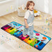 It is specially designed for young musicians aged 3+ years old. The colorful musical mat features 24 piano keys and 8 different instrument sounds. Your little one can explore and discover a variety of musical tones, from piano to violin, harp, saxophone, accordion, trumpet, vibraphone, and even guitar. The built-in music will inspire their interest in music and rhythm. There are more exquisite details, including the power switch and indicator lights. Power switch, volume increase, volume decrease, record mode, playback mode, play mode, and demo mode make it simple enough for kids to operate. You can also record kids’ musical creations and play them back for more fun. Non-slip bottom ensures safe stepping, and makes the mat strong enough to withstand daily jumping or dancing. The harmless materials allow for safe use. The playmat is easy to fold and carry. The easy-to-clean surface makes maintenance a breeze. Bullet Point: Multiple Musical Functions: The piano mat features 8 instrument sounds and 24 piano keys for kids to create their own music. The built-in melodies bring your little one more auditory enjoyment. It is also designed with recording and playback functions for added fun. Safe and Reliable Materials: Made with harmless materials, the kids musical playmat is safe enough for kids to use. Anti-slip bottom increases friction. Educational Gift for Children: The fun musical functions not only keep your kids engaged for hours, but are also great for hearing training and music sense cultivation. It is an ideal choice to exercise kids’ hands and feet. Foldable and Portable Design: The dance mat can be easily folded up into a narrow shape for compact storage. It weighs only 1kg. You can effortlessly take it wherever you like. Plus, it is suitable for both indoor and outdoor use, allowing your little one to enjoy the music game anywhere. Perfect Size and Easy Cleaning: No assembly is needed. Measuring 71.5” x 29”(L x W x H), the floor piano mat offers ample space for kids to play with their hands or feet. The smooth surface can be easily wiped clean with a wet cloth.