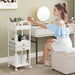 The top divisional compartments are crafted for showcasing your favorite makeup items, from nail polish to perfumes, while keeping them within reach. Below, 2 storage shelves provide ample room for larger items and 2 fabric drawers offer additional discreet storage for items you prefer to tuck away. Constructed with sturdy metal frame, the makeup organizer is built to last. For added convenience, the skincare organizer cart boasts smooth-rolling wheels with 2 lockable brakes. This rolling vanity organizer is a veritable station for beauty essentials, combining convenience with aesthetic appeal. Elaborate Organization Layout: The makeup organizer features a top divisional cosmetic display case for easy access to frequently used items. Below, 2 slide-out drawers and storage shelves provide classified storage space for skincare, cosmetics, beauty products and hair accessories. Built with Strength: Made with a heavy-duty metal frame, this skincare organizer cart is built to last and can bear up to 10 kg on each tier. Plus, the protective fence and anti-drop design support your cosmetics collection reliably. Easy Mobility & Lockable Design: Equipped with 4 universal wheels, this vanity organizer holder can be moved effortlessly around your space. 2 wheels have brakes for locking the cart in place when required. Versatile Storage Solution: The cosmetics display cases holder doubles as a storage organizer in the cloakroom, living room, study, bedroom and bathroom. Thus, you will no longer be bothered about messy home. Charming Gift Option: This rolling vanity organizer is ideal for anyone who loves to keep their beauty essentials organized. It is a fantastic gift choice for birthdays, holidays, or any special occasion, offering both functionality and aesthetic appeal.
