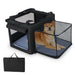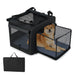 This versatile pet carrier combines functionality and comfort, featuring multiple openings and mesh windows for enhanced visibility and easy access to your pet. It includes a extandable mesh basket to keep your pet secure and comfortable. The foldable and portable design allows for compact storage, making it ideal for travel, camping, or everyday use. It can be easily carried as a handbag or backpack, thanks to its detachable shoulder straps. Suitable for both indoor and outdoor activities, this carrier is crafted from 600D Oxford fabric and supported by a sturdy metal frame, ensuring long-lasting durability. Additionally, it also includes a soft cushion for added comfort, along with practical side pockets and a water cup holder for storing essentials. Multiple Openings and Included Basket: This doge crate features 2 convenient openings for easy access to your pet, and a mesh window for better visibility. Besides, it also comes with a built-in extandable mesh basket with mat that serves to limit your pet's movement, ensuring they stay secure and comfortable. Foldable and Portable Design: Designed with a foldable structure, this pet carrying bag allows for compact storage when not in use. The lightweight design makes it perfect for travel, camping, or simply moving around the house. This bag can be used as a handbag or backpack, with detachable shoulder straps for added convenience. Wide Application: This collapsible travel dog crate is suitable for both indoor and outdoor activities. Whether you're going on a weekend getaway or just need a cozy space for your pet at home, this pet carrier is a reliable and practical choice. Selected Material and Stable Frame: Crafted from high-quality 600D Oxford fabric, this pet carrier is both reliable and easy to clean. Additionally, the sturdy metal frame is designed to withstand daily use and ensure long-lasting durability. More Practical Designs: This portable dog kennel includes a soft and comfortable cushion for added comfort and space. Moreover, the 2 convenient side pockets and a water cup holder for storing essentials.