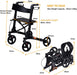 Our rollator walker's ingenious design features a cross-brace structure, allowing for a neat side-to-side fold. This isn't just about saving space—it's about making your life easier. Fold and adjust the width to move effortlessly through tight spots, ensuring that no narrow doorway or crowded hallway will slow you down. When it's time to travel, the walker’s front wheels and rear legs fold in seconds, so you can stow it away in a car trunk or tuck it neatly in a corner without any hassle.