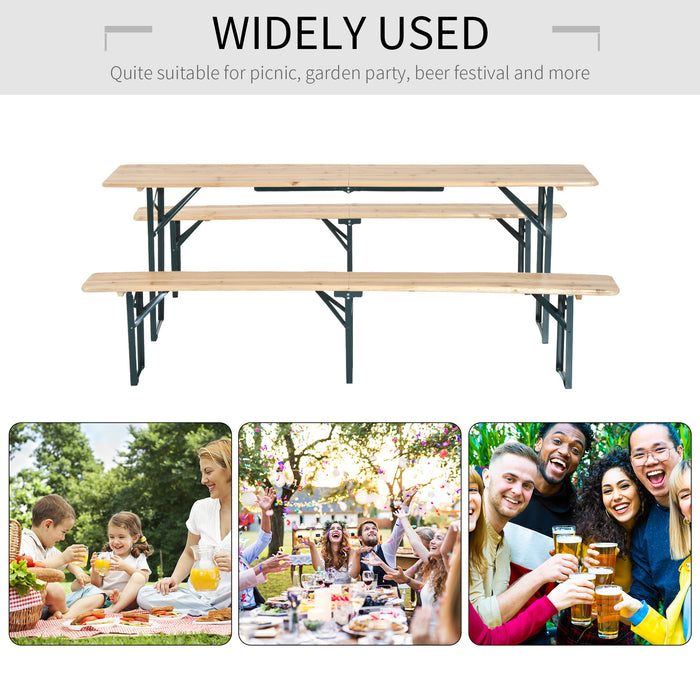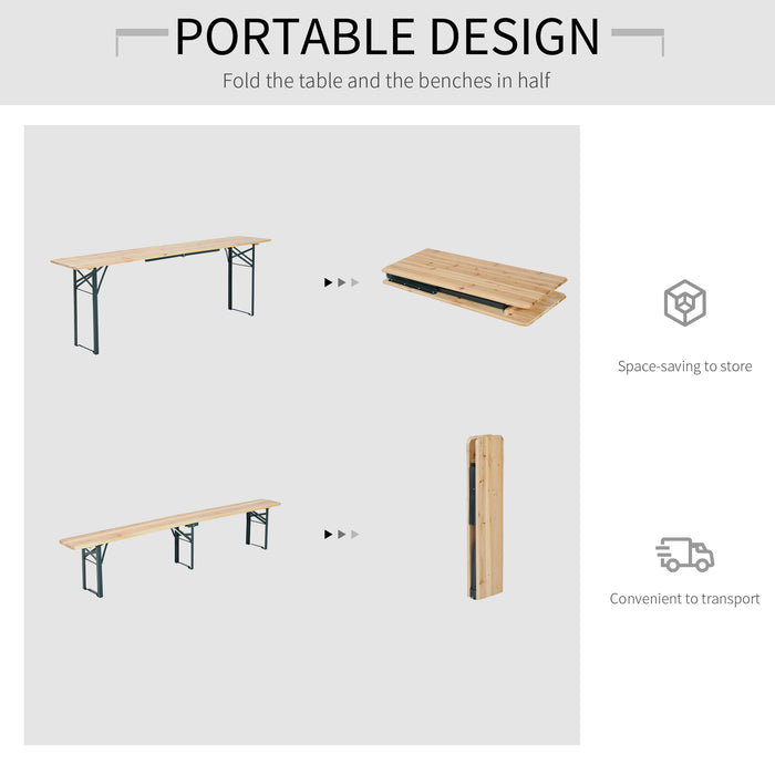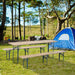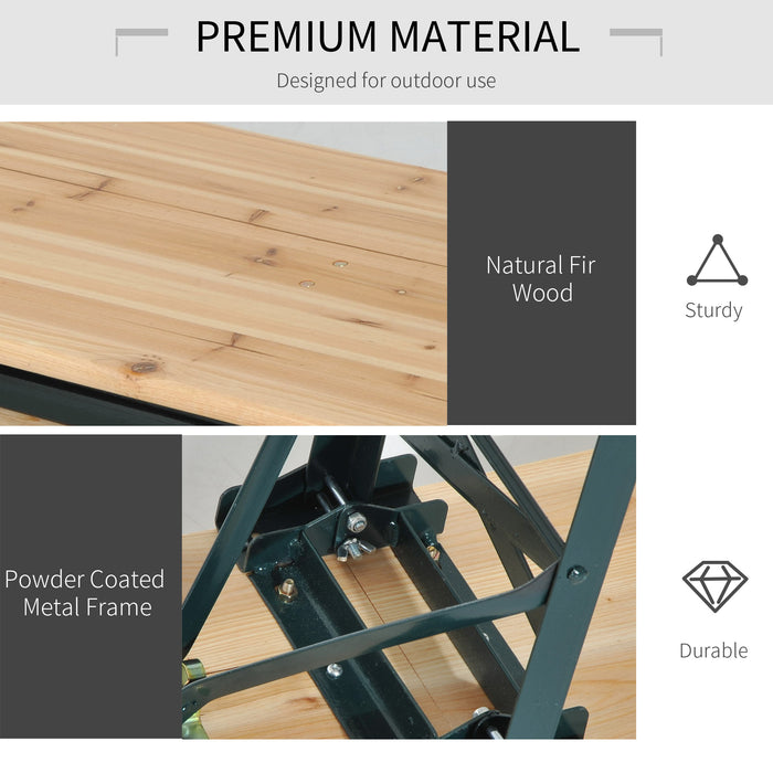 This inviting patio table set, an offering from the esteemed Outsunny brand, blends a classic wooden look with a touch of dark green framing, injecting style and sophistication into your outdoor setting. Ideal for picnics, camping excursions, and all kinds of outdoor jaunts, the total net weight stands at 33.3kg, and it is delivered flat-packed for convenience, with an easy-to-follow manual included.