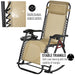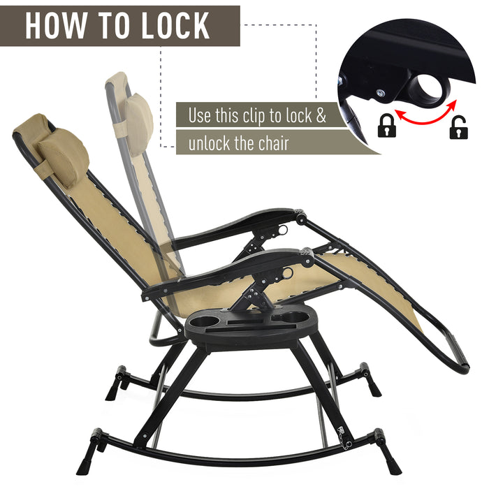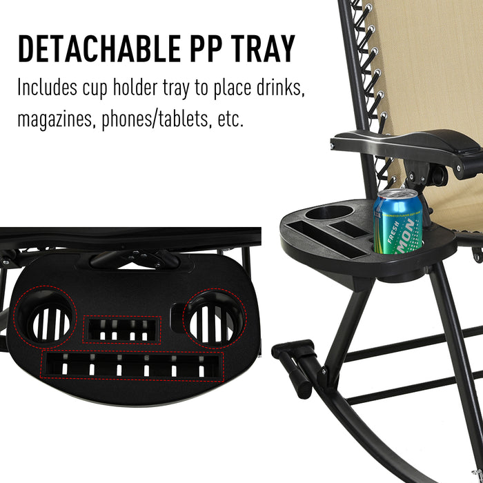 The rocking chair's dimensions cater to various stages of relaxation, from fully upright to completely reclined, providing ample space for leisure. It comes with a built-in cup holder tray for convenience, ensuring that your essentials are within reach. No assembly is required; it's ready for immediate use upon arrival.