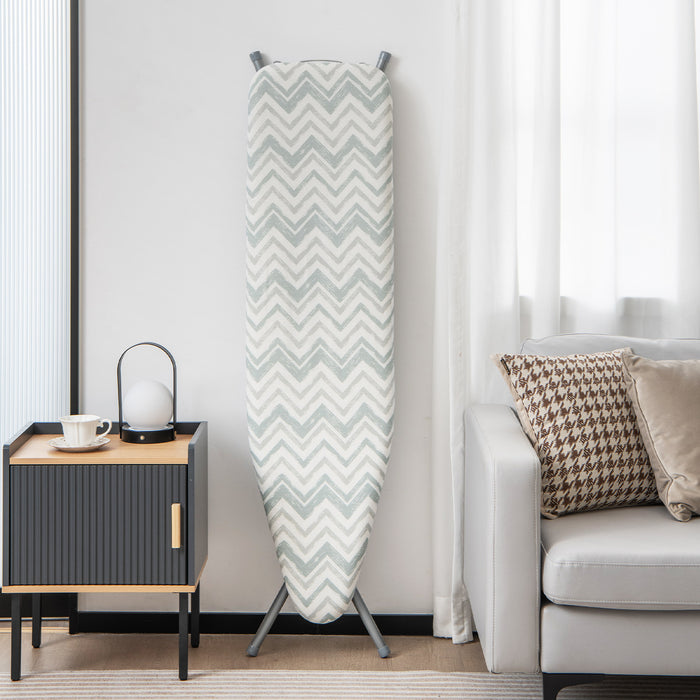 Our board boasts a highly breathable, 100% cotton cover that ensures an even distribution of steam. Improving ironing efficacy, this board features a dual-layer padding system comprising of a densely woven, moisture-absorbing needle cotton layer and a sturdy sponge support layer.