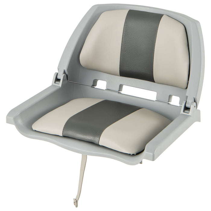 Experience ultimate comfort with this boat seat! During long boat trip, the low back and wide seat can greatly reduce fatigue. What’s more, filled with thicker sponge, the seat with back is comfortable to sit on, which won’t sag even after long-term seating. Even better, the PVC leather is waterproof, withstanding the rigors of a marine environment. When not in use, the boat seat can be effortless folded down. Also, the fixing strap will securely fasten the folded boat seat. With mounting hardware, you can easily install the boat seat in fishing boat, sightseeing boat, speedboat, canoe etc. Humanized Low-back Seat: Designed with a widened seat and an ergonomic backrest, this boat seat greatly reduces fatigue during long boat trips. Also, the low back design can help prevent slippage and keep the occupant securely seated while the boat is in motion. Waterproof Thicker Cushion: This folding boat seat features premium PVC exterior, which is waterproof, wear-resistant and easy to clean. Filled with high density sponge, the seat cushion is soft and comfortable to sit on, which also won’t sag even after long periods of sitting. Quick and Convenient Folding: The boat seat can easily and quickly fold in half, ensuring hassle-free folding and storage without taking up excessive room. When not using it, you can use the fixing strap to securely keep the seat in folded state. High Sturdiness and Durability: The high strength PP frame endows this folding boat seat with a strong loading capacity of up to 120 kg. And the tight stitching of the seat cushion can effectively prevent tears or fraying. Easy Installation, Wide Use: The seat can be pedestal or swivel mounted, you simply bolt the seat to the base (Mounting hardware is provided). Whether on a fishing boat, sightseeing boat, speedboat, or canoe, the boat seat without arms provides freedom of movement.