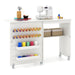 This multipurpose sewing table seamlessly transforms into a side table or computer desk, making it a perfect fit for any compact space. With spacious storage space, including a generous tabletop, 2 storage trays, 18 pegs, and an open compartment, all your crafting supplies will be neatly organized at your fingertips. The sewing cart is equipped with 5 lockable swivel wheels, providing smooth mobility and stability for a secure crafting experience. With a charming barn door design, this sewing craft table adds a touch of rustic chic to your workspace, creating a stylish and functional addition to any home. Multipurpose Sewing Table: This folding sewing table seamlessly transforms into a side table or computer desk, providing an adaptable workspace for your crafting or work needs. Its compact folding design makes an excellent choice for small spaces. Ample Work and Storage Space: With a generous tabletop, you can work comfortably on your projects. The foldable sewing cabinet also includes 2 storage trays, 18 pegs, and an open compartment, allowing you to keep your sewing machine, pins, yarns, scissors and ornaments neatly organized and easily accessible. 5 Lockable Swivel Wheels: This multipurpose craft station features 5 universal wheels that offer outstanding mobility. All the wheels are equipped with brakes for added stability, giving you the option to secure them in place for a steady crafting experience. Secure and Accessible Storage: Thanks to the magnetic door catch, the sewing desk’s door remains closed securely, keeping your projects safe. The handy knob and flexible metal hinges make it easy to open and close the door for quick access to your supplies. Stylish and Functional Design: Featuring a barn door, this sewing cart adds a rustic touch to any room. Its stylish and functional design serves as a chic and practical addition to your creative workspace, complementing a variety of home styles.