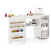 Designed for the modern crafter, this multifunctional rolling cabinet boasts space-saving elegance that folds away neatly. It features ample storage, including shelves and hidden bins, to keep your supplies organized. Moreover, this craft cabinet features 6 universal casters with brakes for easy mobility and stability in any corner of your home. Its sturdy and high-quality construction supports a variety of uses, including sewing, crafting and even serving as a makeshift office desk. If you are looking for such a product, do not hesitate to buy it! Ample Storage Options: This craft table features 2 yarn holders, 18 thread racks and 4 storage shelves, offering ample space for organizing your sewing tools, fabrics and accessories to keep everything within reach. Folding Convenience: This sewing table, designed with a drop leaf, creates an expansive workspace and saves space. Fold it for easy storage when not in use to fit into small spaces. Enhanced Mobility with Safety: The 6 universal casters allow you to smoothly roll this folding sewing desk across various surfaces with ease. All of them are lockable to ensure strong stability when you are working on your projects. Sturdy Construction: This craft table with storage is built with high-quality MDF that ensures durability and a sturdy base for your sewing machine or other crafting equipment, allowing you to work with precision and confidence. Multifunctional Design: Not just for sewing. This folding table with storage serves multiple purposes. Use it as a craft table, a portable home office desk, a side desk or even a utility table for a variety of projects.