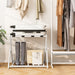 Colour: White + Black/Black Material: Metal, Nylon Overall Dimensions: 68 x 45 x 57 cm (L x W x H) Folding Dimensions: 68 x 7 x 70 cm (L x W x H) Weight Capacity of Top: 20 kg Weight Capacity of Bottom: 30 kg Net Weight of Each Rack: 5 kg Package Includes: 1 x Luggage Stand 1 x Instruction Manual