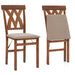 Color: Black+Walnut/Gray+White Material: Rubber Wood, PVC Leather, Sponge, MDF Product Dimensions: 41 x 53 x 91 cm (L x W x H) Seat Size: 40 x 40 cm (L x W) Seat Height: 47 cm Folding Size: 41 x 18 x 91 cm (L x W x H) Weight Capacity of Each Chair: 150 kg Net Weight of 2 Chairs: 11 kg Box QTY: 1(May vary by batch) Package includes: 2 x Folding Dining Chairs 1 x User’s Manual