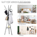The stand features three primary branches that expand into nine individual hooks. These are perfect for organizing a multitude of items, such as coats, purses, scarves, and jackets. The convenience does not end there - a circular bottom shelf provides additional storage space, ideal for decorative bins, plants, toys, or other personal effects.
