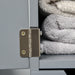 Destined for areas where space is at a premium, this cabinet's tall and narrow silhouette ensures it fits snugly without compromising on style or utility. Bathed in a graceful grey hue, it contributes a refined aesthetic to any decor.