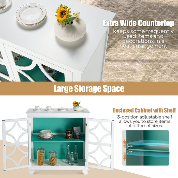 Envision a charming addition to your home's interior, thanks to the intricate decorative patterns that adorn this cabinet. Its chic style is suited to a variety of decor themes, ensuring that it serves not only as a functional item but also as a statement piece that elevates your space. This sideboard transitions smoothly from a sophisticated buffet to a stylish storage cupboard or even an elegant bar cabinet.