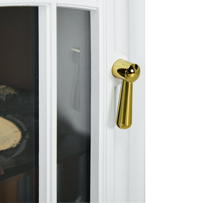 Our electric fireplace boasts a robust steel case complemented by a tempered glass door that not only adds an extra layer of safety but also enhances the unit's aesthetic appeal, allowing for an unobstructed view of the mesmerizing flames. Simple and quick to assemble, it comes complete with all necessary fixing screws. The dimensions of this beautifully crafted piece are 41.5W x 28D x 54.8H cm, ideal for making a statement in any room without overwhelming the space.