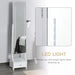 Adorned with LED light strips gracefully positioned on each side of the full-length mirror, this armoire offers a gentle glow to ease your beauty routine. A smart touch switch activates the lighting, which conveniently powers down after 15 minutes of non-use to conserve energy and ensure safety.